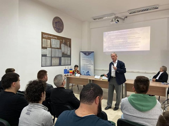 avand ca invitat pe Dl . Craig Marsh, LIBS, Professor la University of Lincoln, care a conferentiat pe tema “entrepreneurship with values”. La conferinta au participat studenti si cadre didactice. Conferinta s-a deschis cu prezentarile D-lui Prof. Vasile Aurel Caus (coordonator proiect) si Prorector Dr. Ligia Burta.